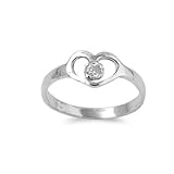 925 Sterling Silver Baby Heart Ring with Clear CZ Stone - Packaged in Gift Pouch - Size 5 (Jewelry)