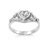 925 Sterling Silver Heart Baby Ring with Clear CZ Stone - Packaged in Gift Pouch - Size 1 (Jewelry)